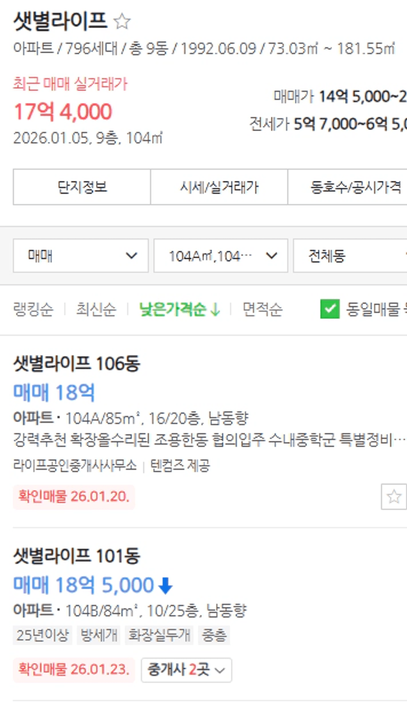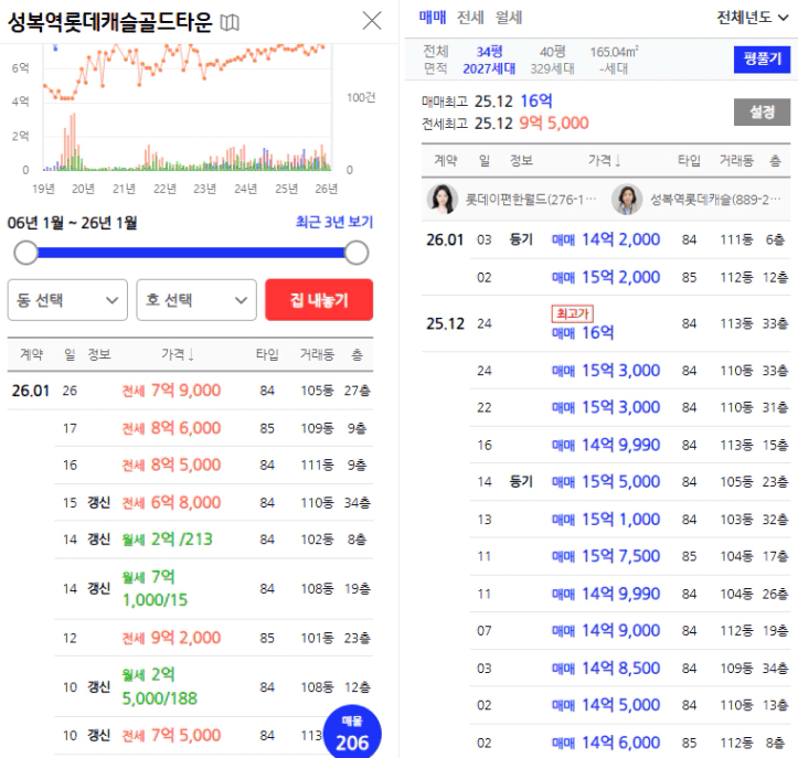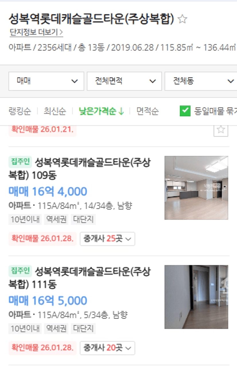 • 수지 성복역 롯데캐슬: 지난달 호가 14억 원 → 현재 16억 원 (약 2.5억 상승)