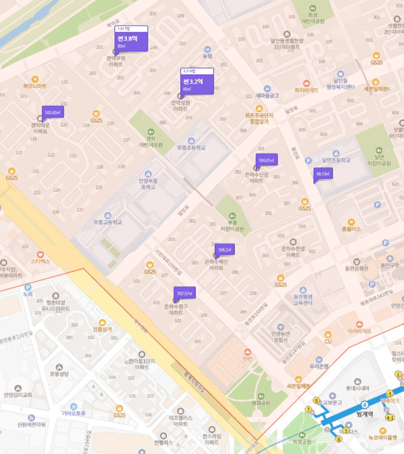평촌지역의 전세매물을