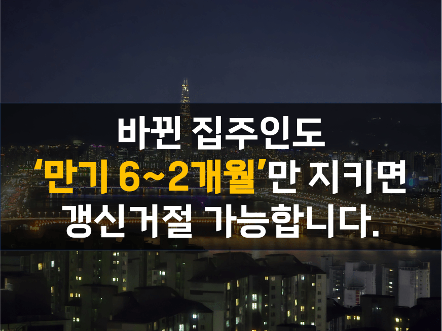 임차인이 갱신요구를 했더라도 만기 6~2개월 안이면 새 집주인도 실거주 사유로 거절 가능하다.
