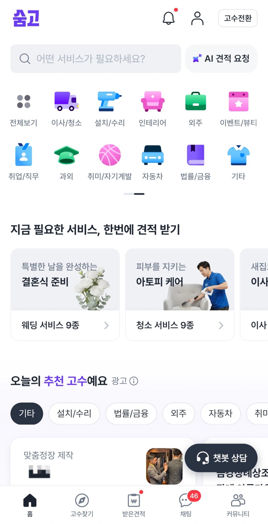 • 저는 ‘숨고’ 어플을 통해서 업체를 파악해보았는데요.