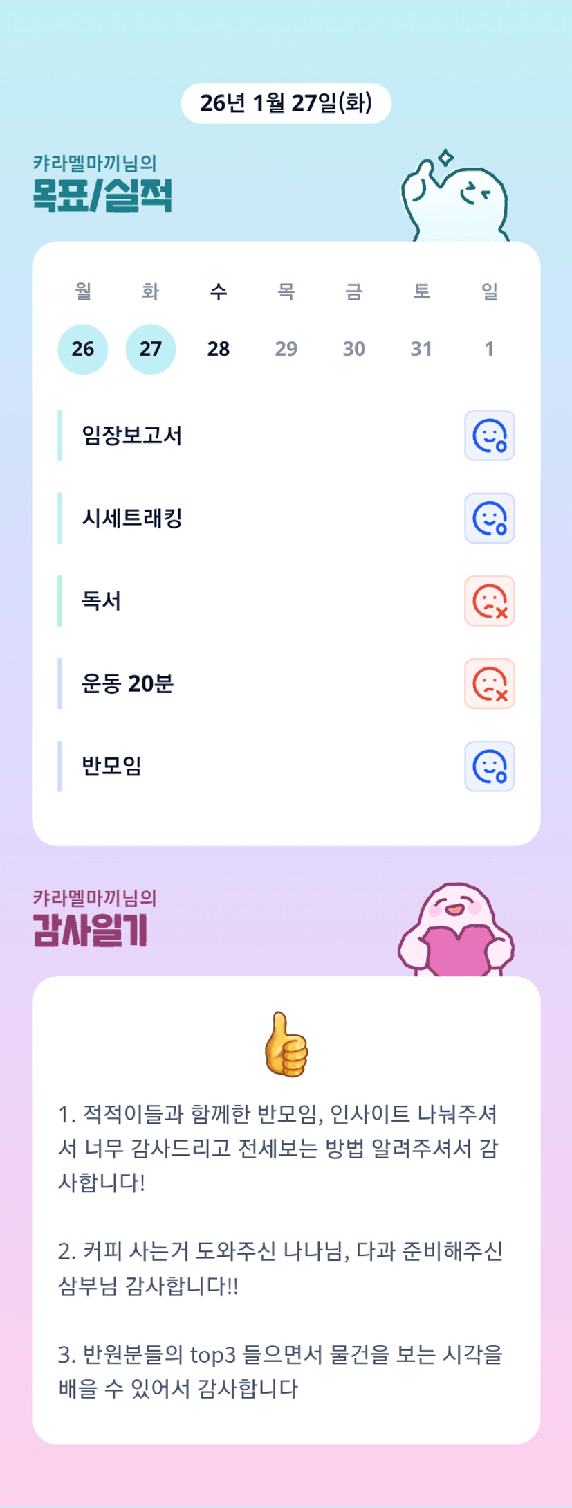 조장님~ 월학 찢어놓고 계신가요?? ㅎㅎ 오늘도 고생하셨습니다!
