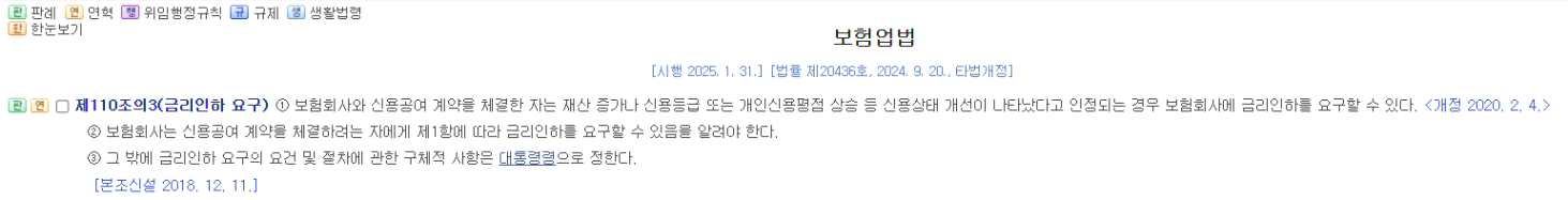 보험업법 제110조의 3에 따라서 금융소비자가 본인의 신용상태가 개선되었다고 인정되는 경우 보험회사에 자신이 이용하고 있는 대출상품에 대한 금리인하를 요구할 수 있는 권리를 말합니다.
