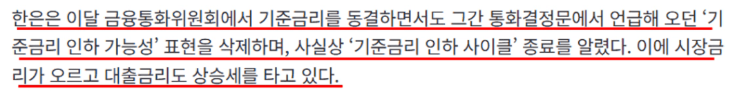 그런데, 최근 환율 이슈로 기준금리가 계속 동결되고 있고