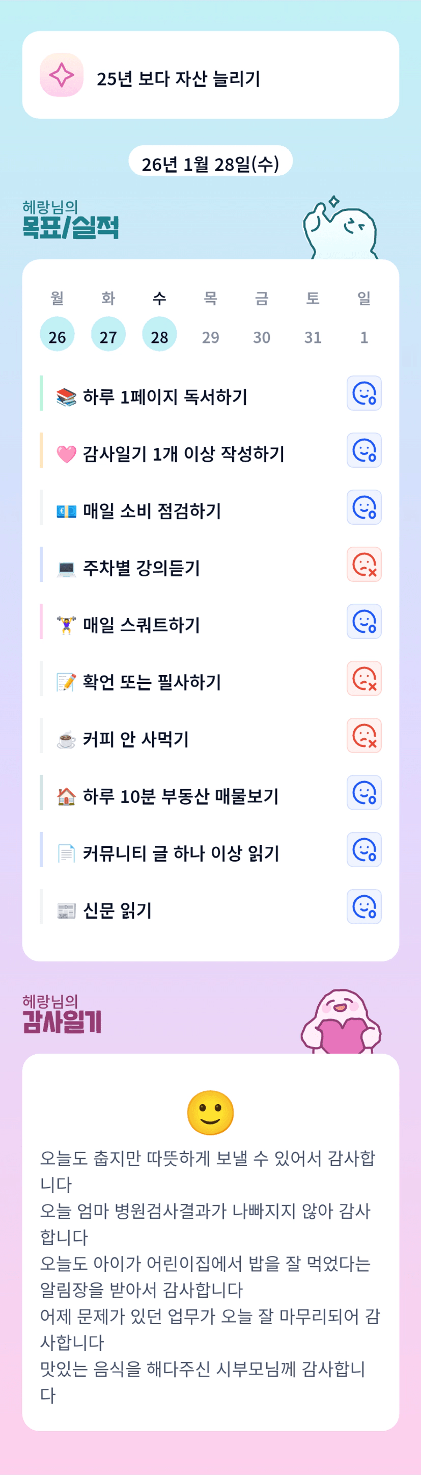 어제 못 다한 목표를 오늘도 하지 못해 반성합니다..