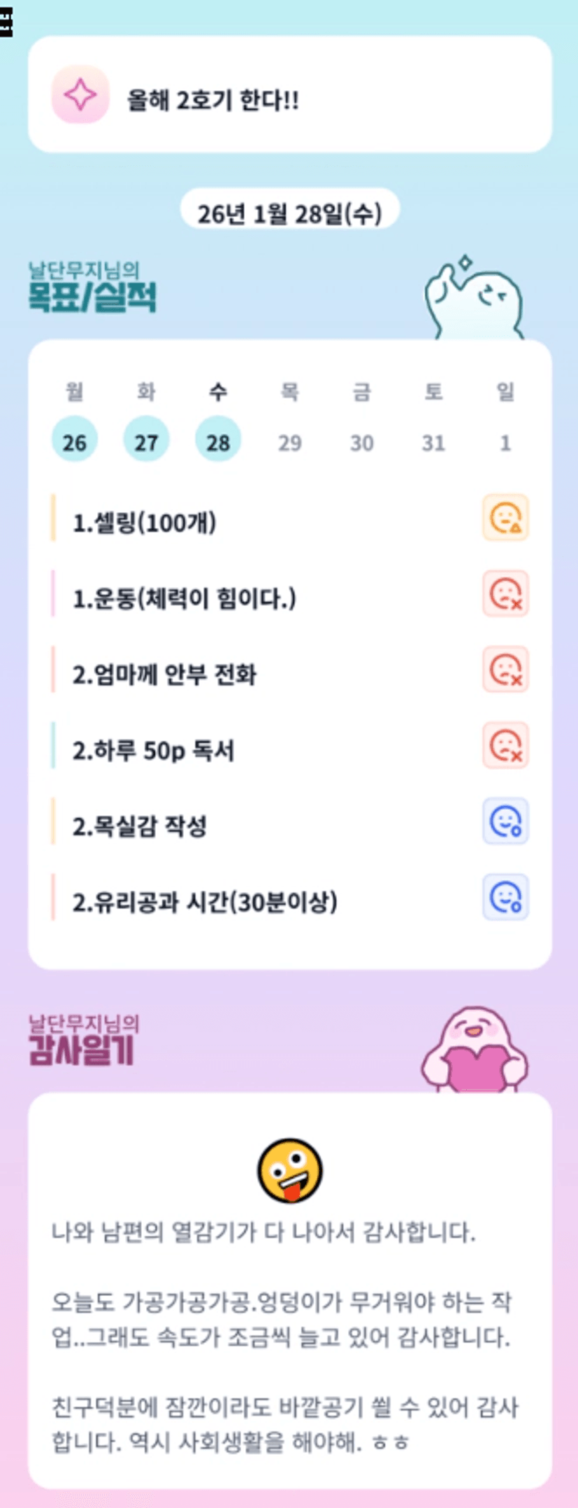 꾸준함이 중요하다. 부정적인 생각이 몰아닥칠 때 독서와 운동을 한다.