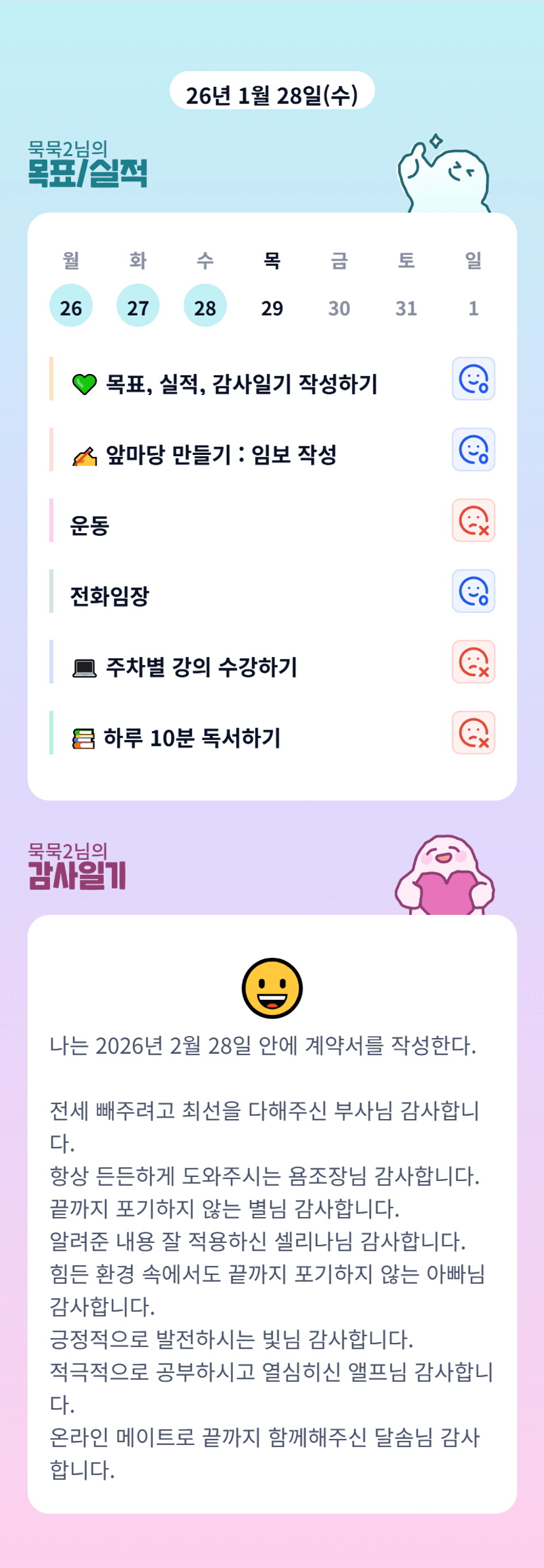 묵묵2님 진짜 꼬옥 2월 안에 계약서 작성하시면 좋겠어요!!! 한 달 동안 저도 잘 부탁드리고, 즐겁게 끝까지 잘 완료해요❤