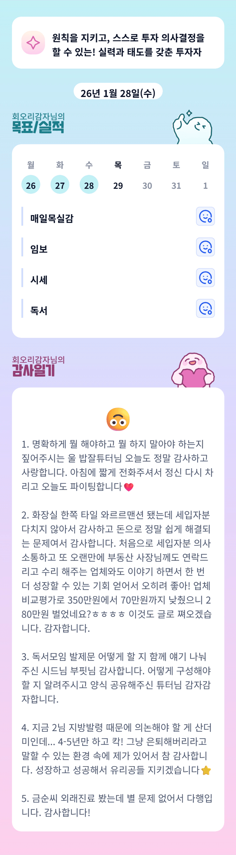 감부님 고생많았어요 ㅠㅠ 유리공도 잘 챙기고 투자도 잘하는 우리 감좌 최고🧡