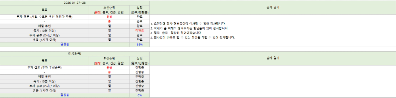 🌻1/292 목표, 1/27~28 실적 & 감사일기