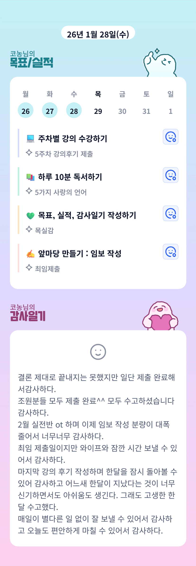 코농님 한달 너무 고생많으셨습니다!