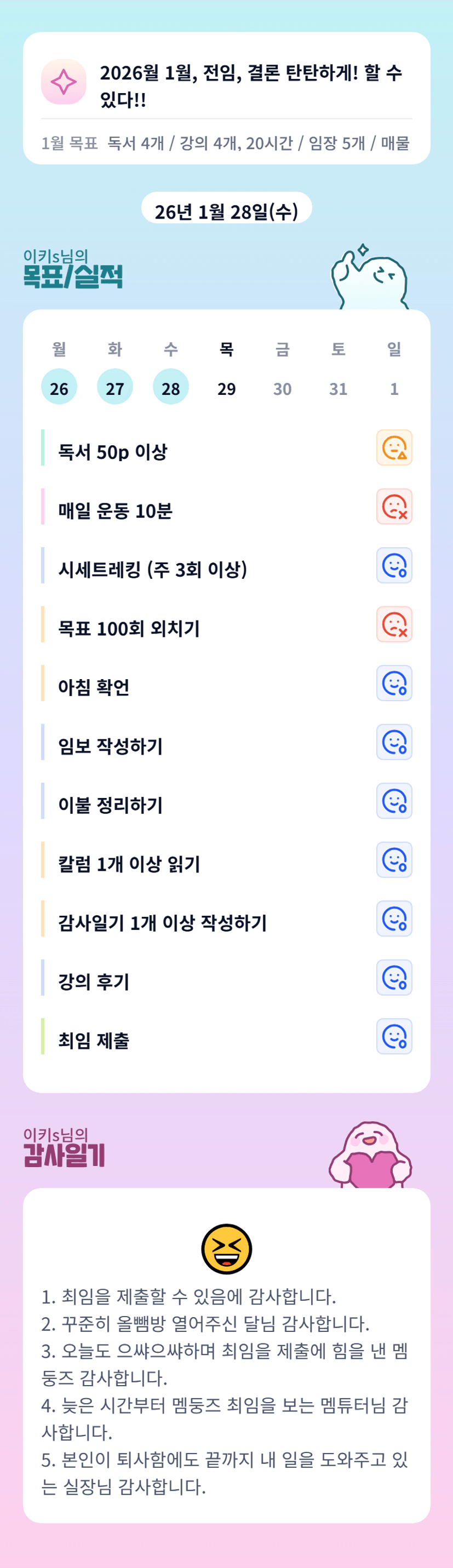 이키님 최임 수고많으셨습니다! 퇴사는 확정나셨군요! 후련함과 걱정사이의 그래도 좋은 기분을 느끼고 계시겠네요ㅋㅋ
