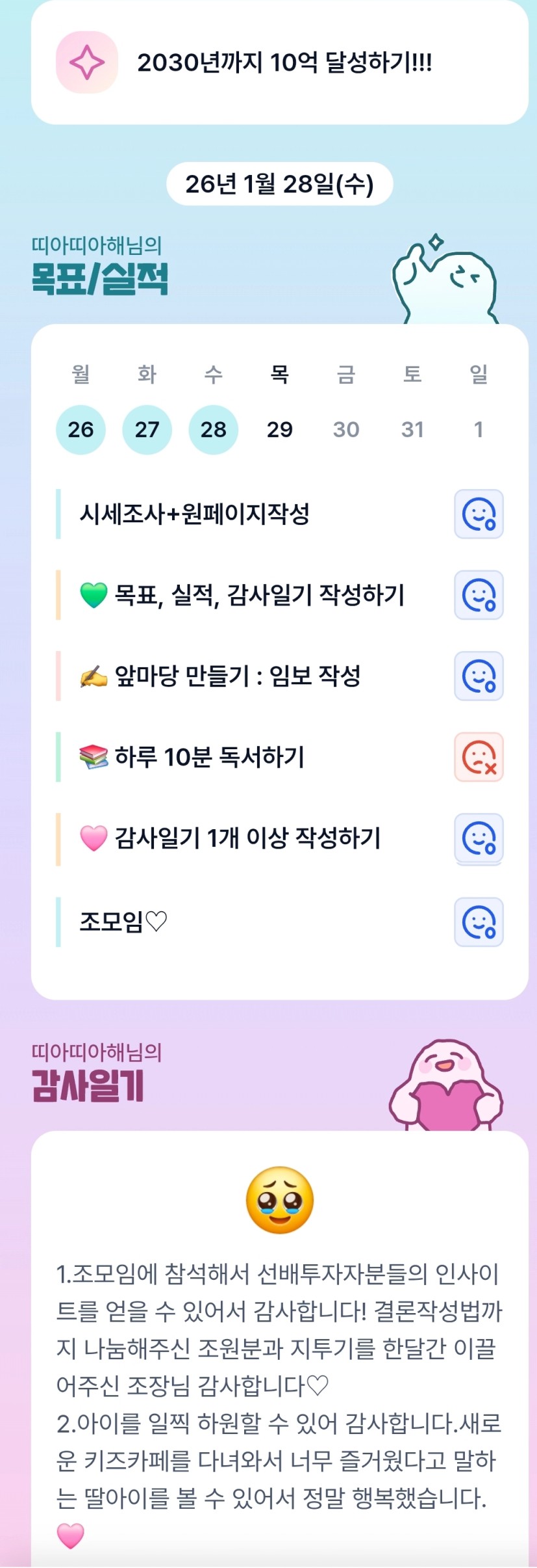 띠아님 덕분에 힘을 얻어서 포기하지 않고 할 수 있었어요 정말 감사해요😍 띠아 생파후 새벽 올뺌까지 최고!!👍 항상 응원드릴게요!