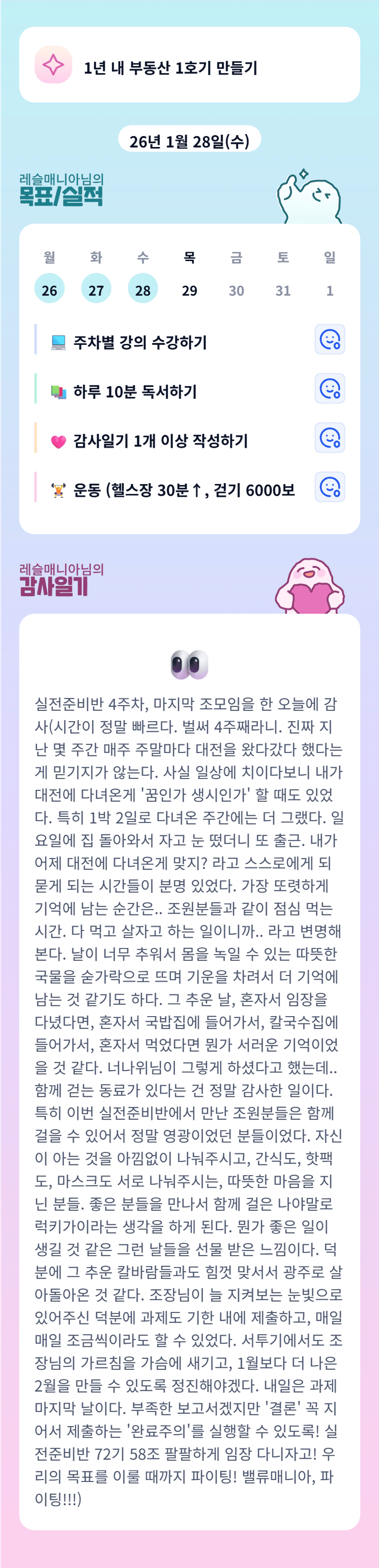 우와 ㅋㅋㅋ 캐릭터 귀여워요. 저도 혼자 임장다녔으면 서러운기분들어서 잘못했을거같애요 ㅜㅜ 다 조원들 덕분 ㅎㅎ