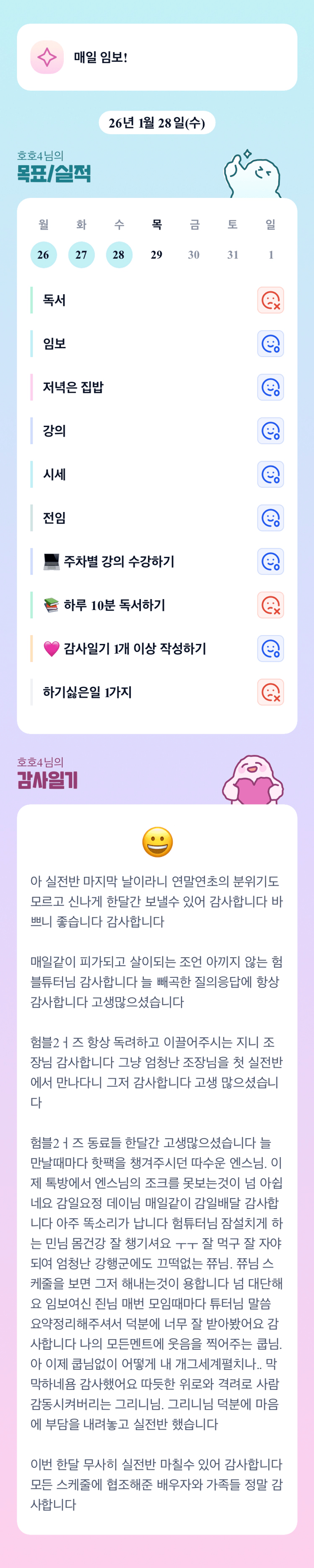 호호님과 함께한 한달 즐거웠고 감사했습니다 앞으로도 언제나 응원합니다