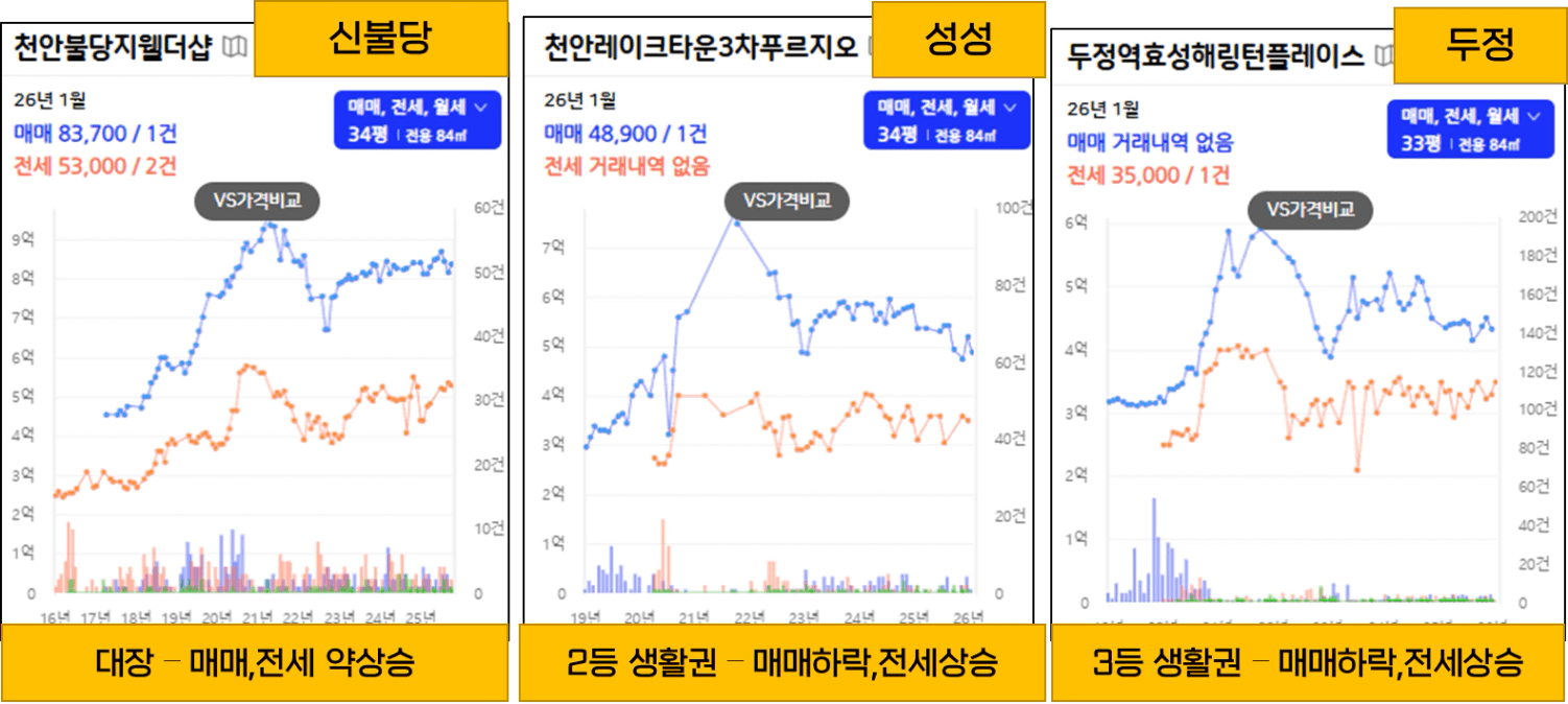 불당과 성성은 실거주 수요와 갈아타기 수요가 많아