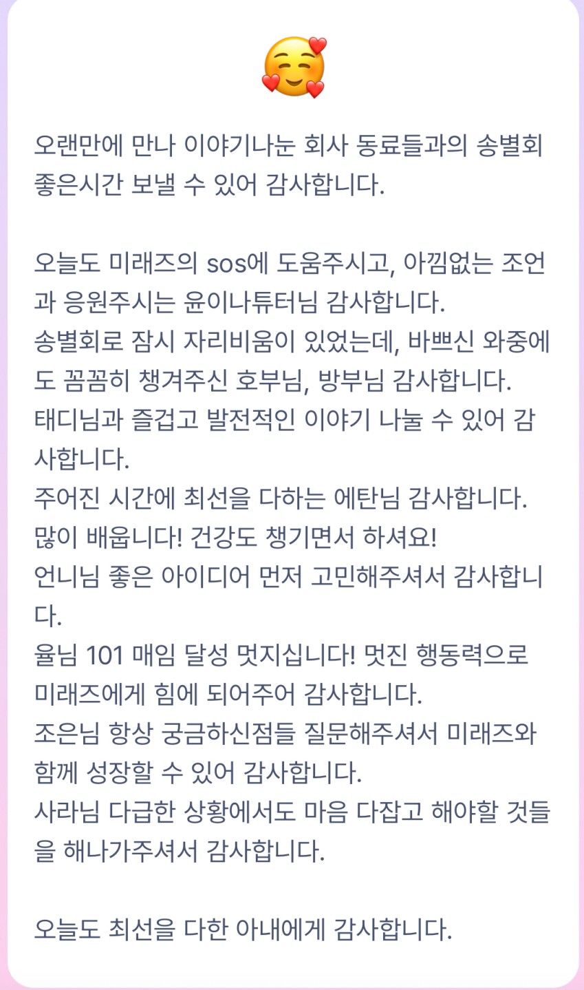 어떻게 매번 이렇게 모든 반원들에게 감사함을 표하십니까? 성인군자세요??!! 진짜 최고의 반장님