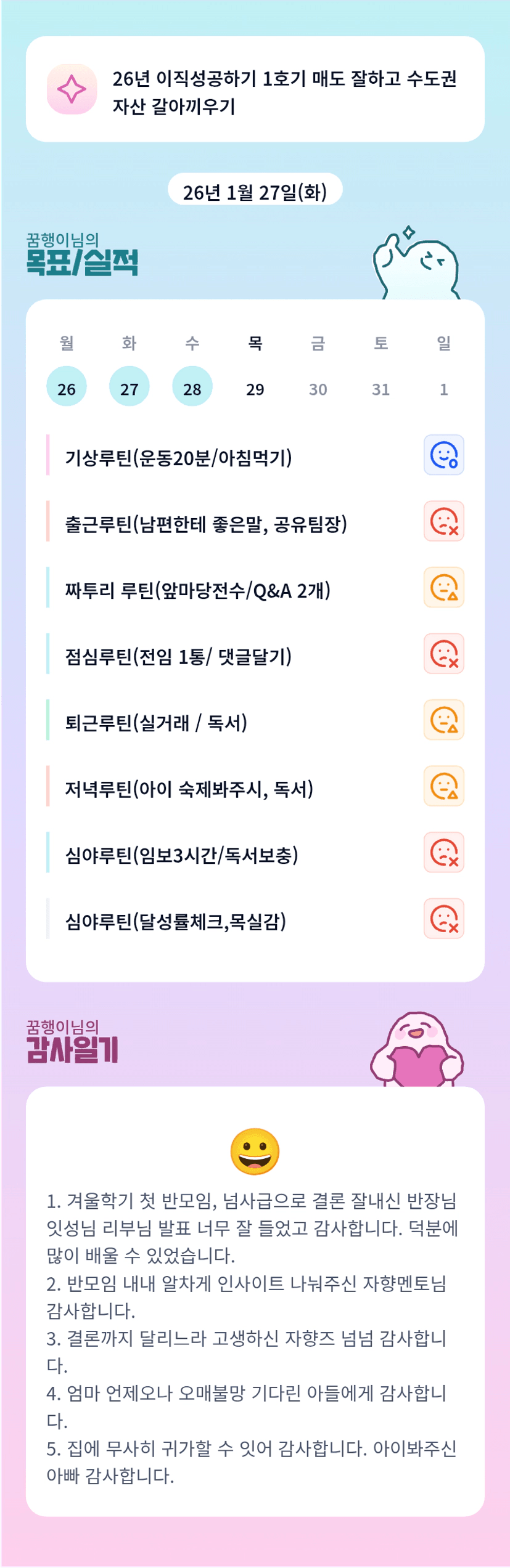 어느 정도 체력이 있어야 루틴을 할 수 있는~~~ 잠도 조금 자세요~~