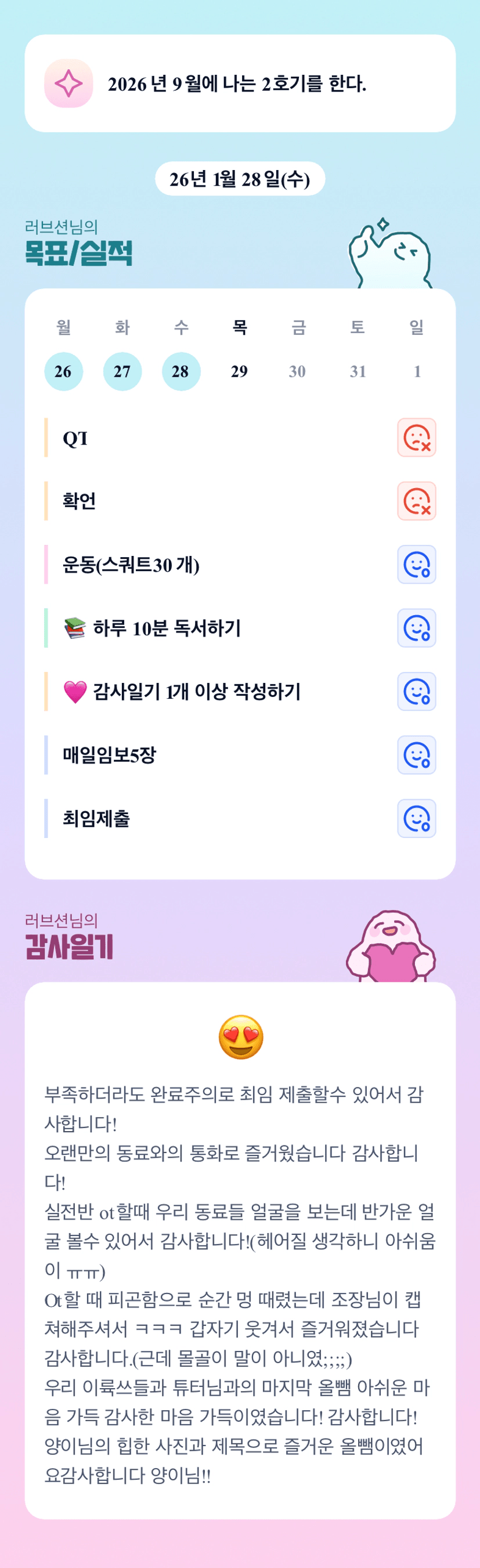 1월 한달도 수고하셨습니다~!! 어떻게 매달 꾸준히 열정적으로 하실 수 있는지~~ 대단하십니다^^