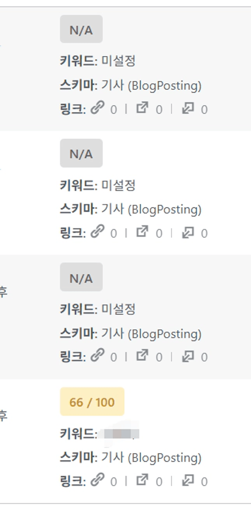 승인글 옮기는 중인데요 워프 글  목록에서 첫번째 글은 키워드가 나오는데 똑같이 작업했는데 두번째 글부터 키워드 미설정이라고 나옵니다 왜 그럴까요?