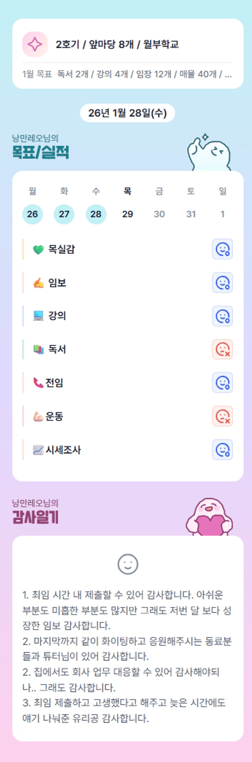 레오조장님 최임 제출까지 완료하셨네요. 한달 동안 고생 많으셨습니다. ^^