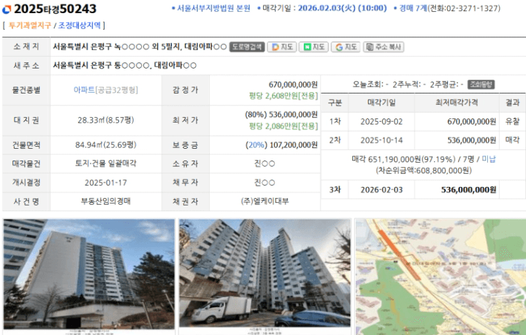 ✔ 감정가 / 최저가: 670,000,000원 / 536,000,000원 (재매각, 80%)