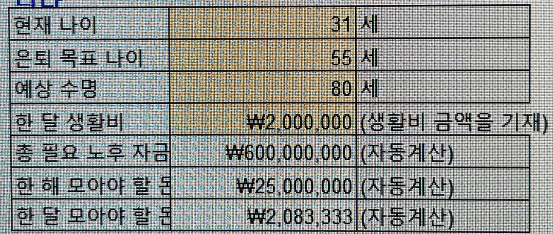과제를하면서 오래오래 건강하고 행복하게 삶을 누리려면 꽤나 많은 돈이 필요하구나 싶었습니다. 저 뿐만아니라 저희 부모님도 생각해보면 20년을 더 지내게 되신다 하면 4억8천만원이 들어가는걸 보고 더 현실감 있게 느껴졌던 것 같아요.. 그저 머랏속으로 생각만했던걸 정확한 수치로 보니 평생 젊고 어리고 건강할거라고 오만했던 제 자신을 다시 되돌아 보는 시간이 되었습니다. 미래를 위한 투자는 선택이 아닌 필수라는 것이 너무 이해되고 납득이 됩니다. 너무 감사해요!
