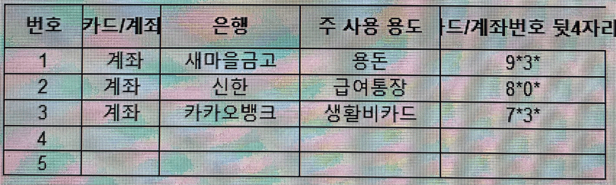 3단계. 자주 쓰는 계좌와 카드 리스트업하기 (최소 2개 ~ 최대 5개까지 진행하기)