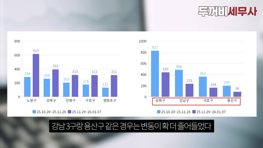 용산구 같은 경우는 그냥 변동이 확 줄어들었다,