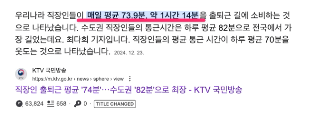우리나라 직장인 평균 출퇴근 시간은 보통 1시간을 훌쩍 넘기니까