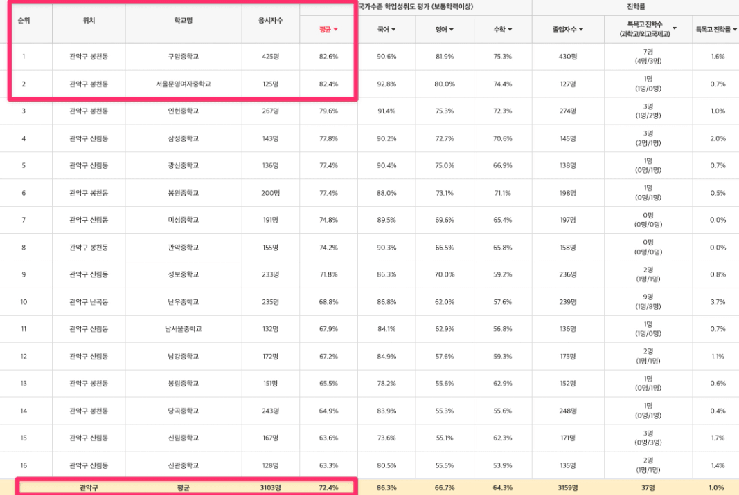 관악구 내에서 성적이 높은 편인