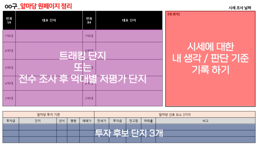 나눔글 마지막에 최종 버전으로 앞마당 원페이지와 시세트래킹을 함께 작성하는 장표 예시가 있었습니다.