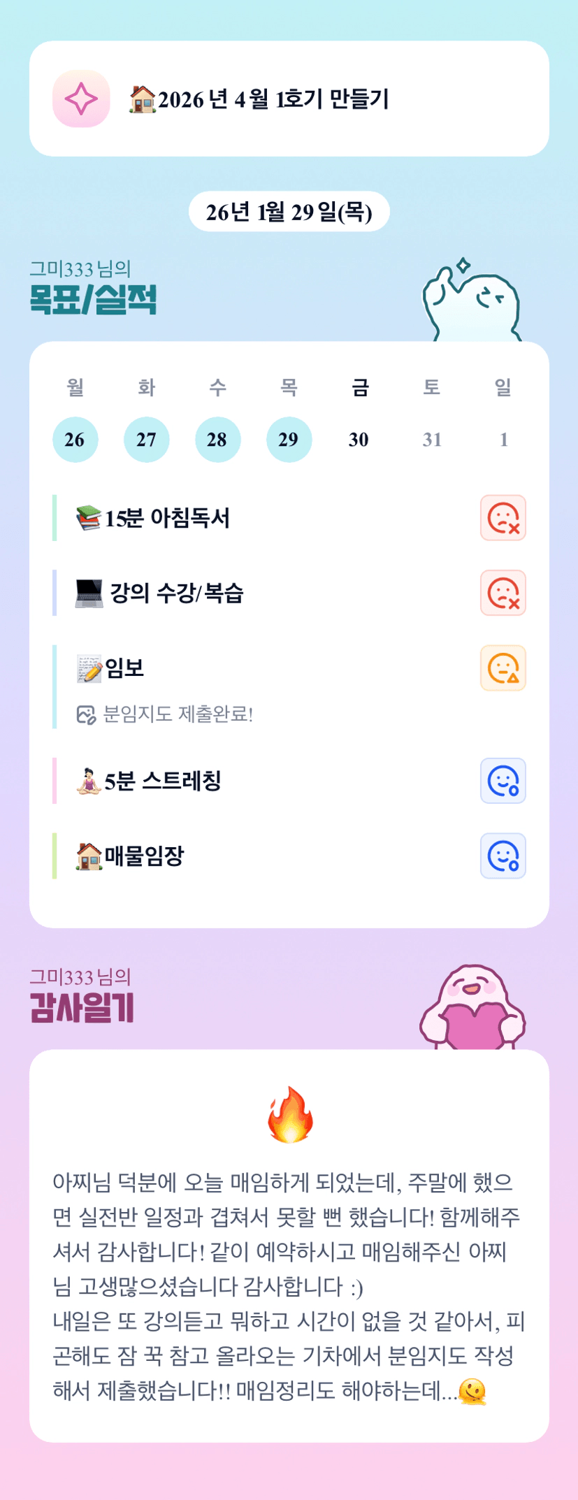 아이고ㅠㅠ그미님 진짜 고생 많으셨어요 기차에서 분임지도라니😭😭내일부터 차근차근 파이팅입니다!!!건강 꼭 잘 챙기기!!