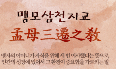 제가 좋아하는 말 중에 하나인데요, 바로 맹모삼천지교입니다. 환경의 중요성을 나타내는 말..