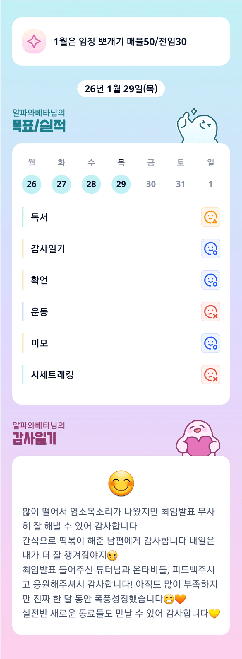떠셨어요? 몰랐습니다. ㅋㅋㅋ 정말 치열하게 고민하신 흔적이 많이 느껴지느 TOP3였습니다. 베타님 2월 실전도 화이팅!!