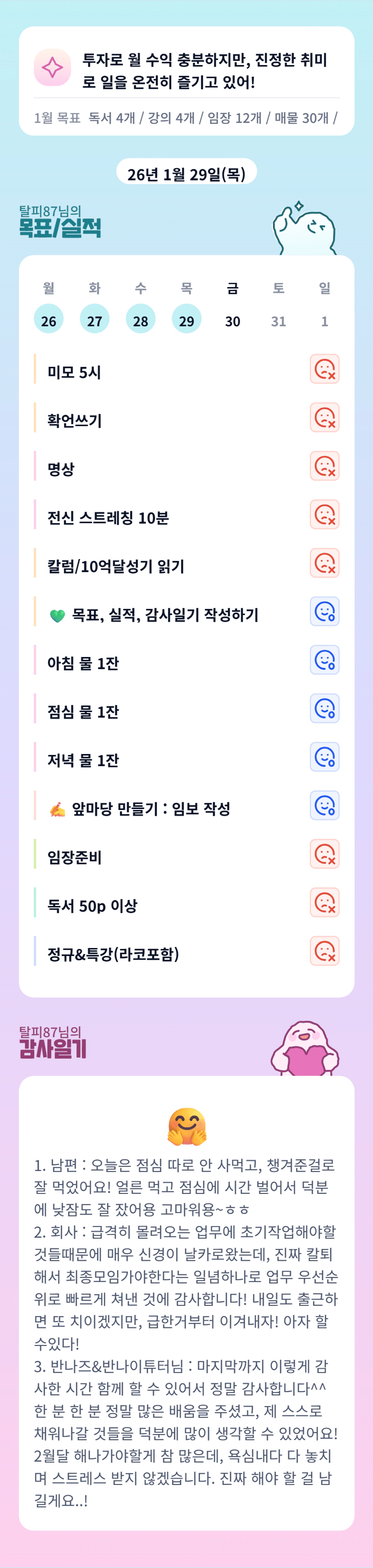 1월 한달 넘 수고 많으셨어요~ 2월도 생각하신대로 잘 되시길~