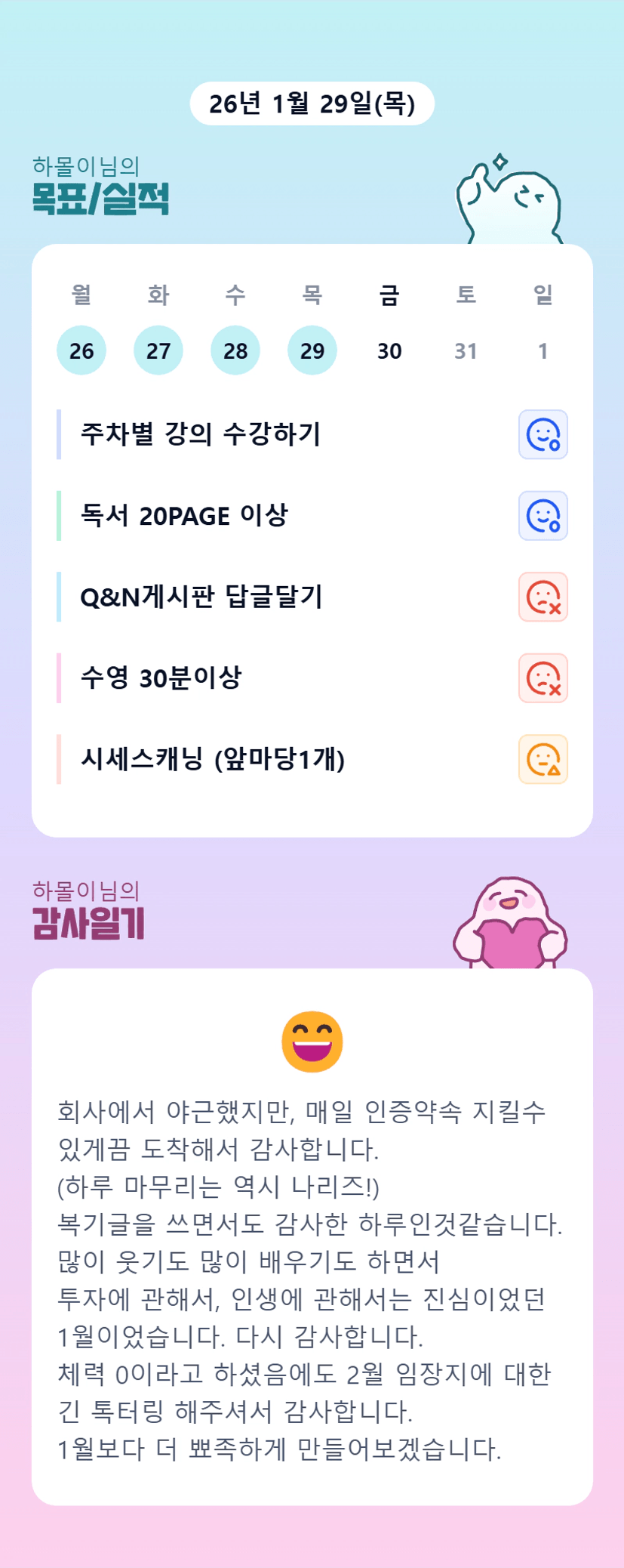 매일 인증 놓치지 않는 꾸준한 몰이님!! 감사합니다~!! 다음 달도 잘 부탁드려용♡