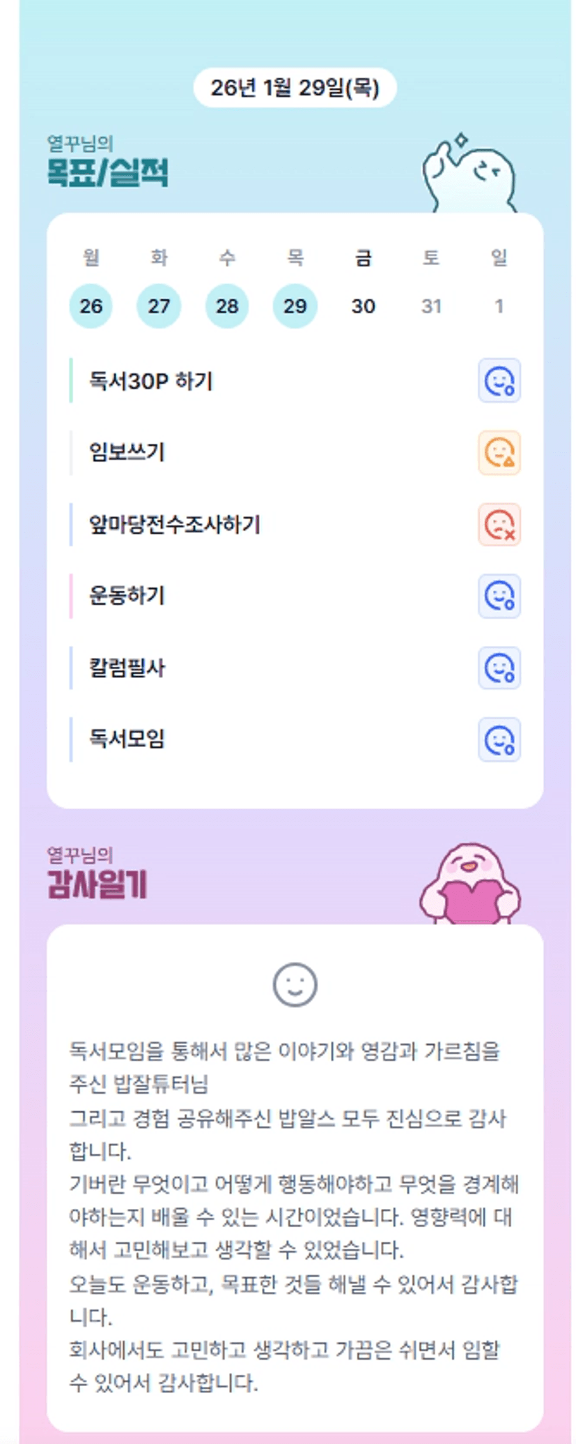 매일을 알차고 열심히 보내는 꾸 화이팅ㅎㅎ 같이 성공하는 기버로 나아가쥬앙