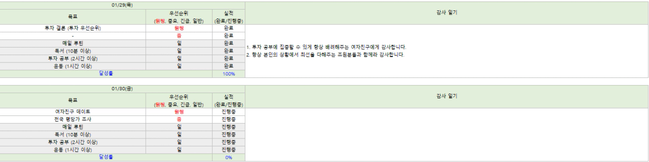 🌻1/30 목표, 1/29 실적 & 감사일기