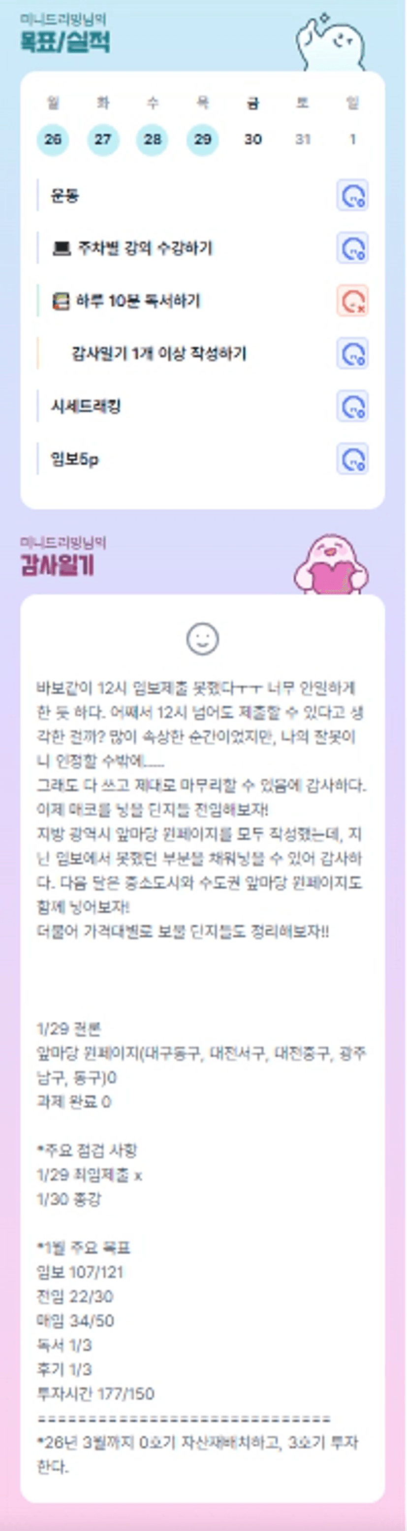 월부 입성1년 20대 싱글 투자자 중소도시 1호기 복기글 [결국해낸다] 자향멘토님, 잔쟈니튜터님, 갱지지튜터님 이것좀 보세요오 ~