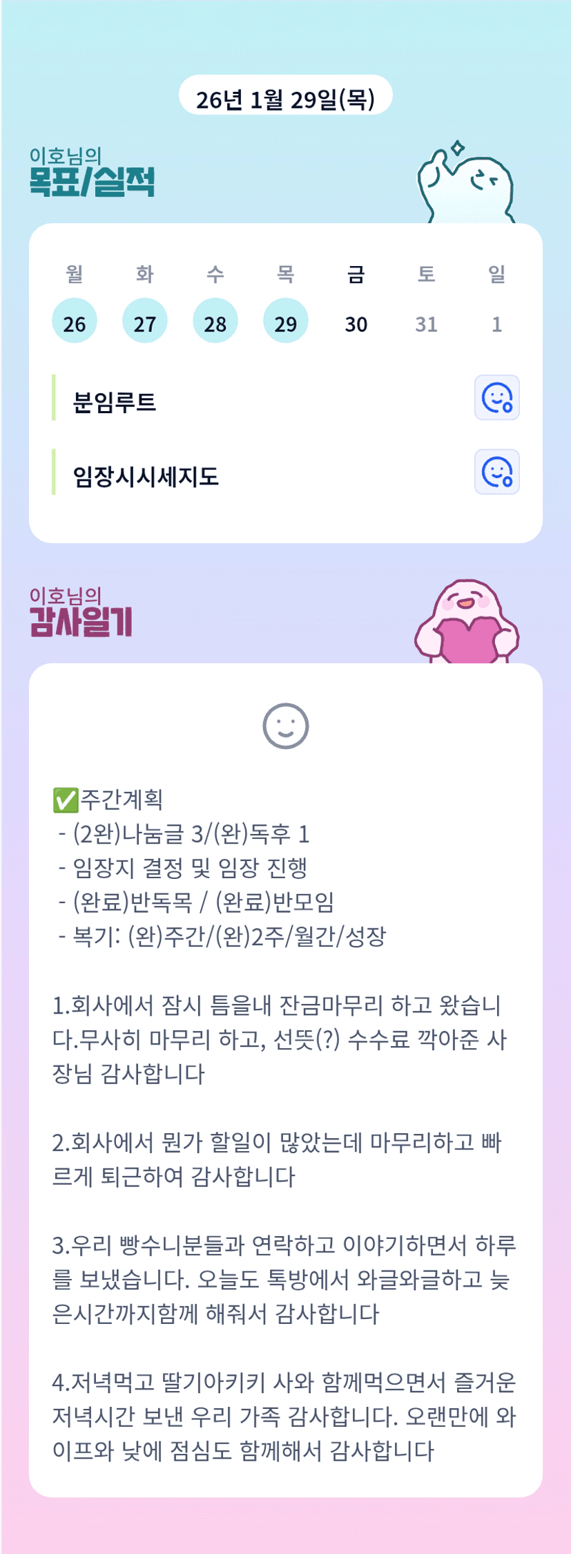 크~ 부사님 최고! ㅎㅎ 반장님 항상 세심하게 신경써주셔서 감사합니다🩵