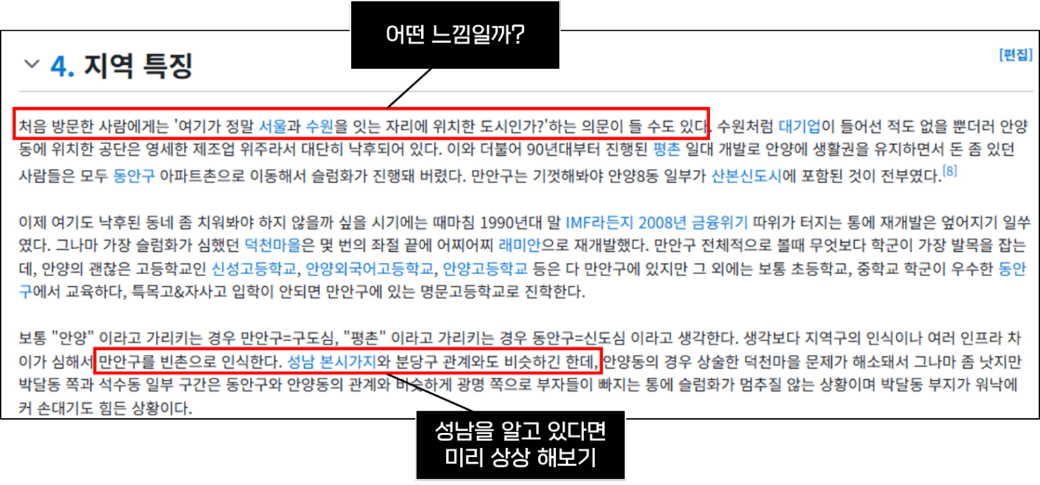 ✔ “여기서 살고 싶다 / 여긴 조금 불편하겠다” 등 의 생각