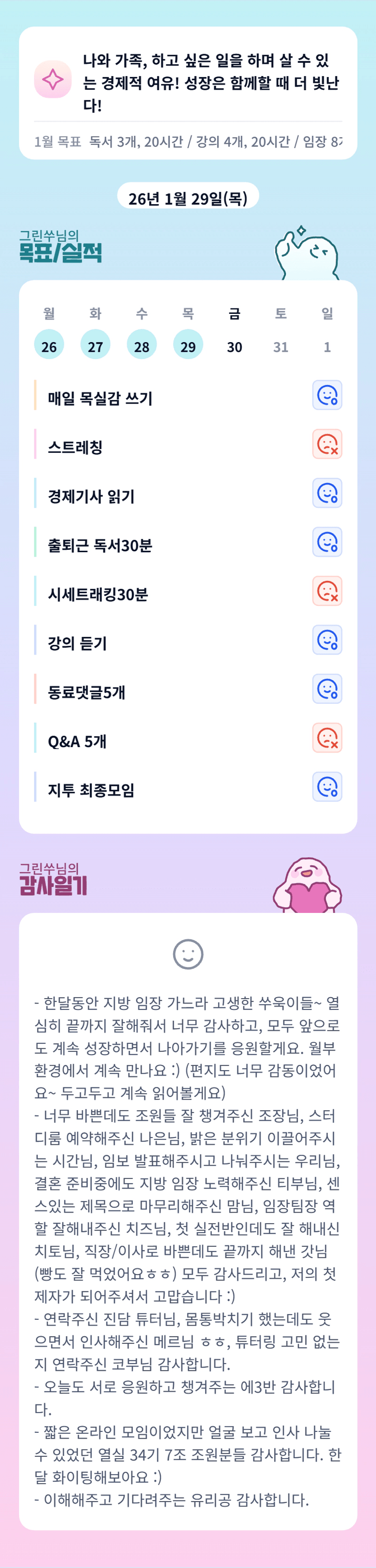 쑤튜터님 한달동안 정말 고생많으셨습니다! 처음은 언제나 설리는 법이니까... 첫 쑤욱이들 기억해주세요🌱😄