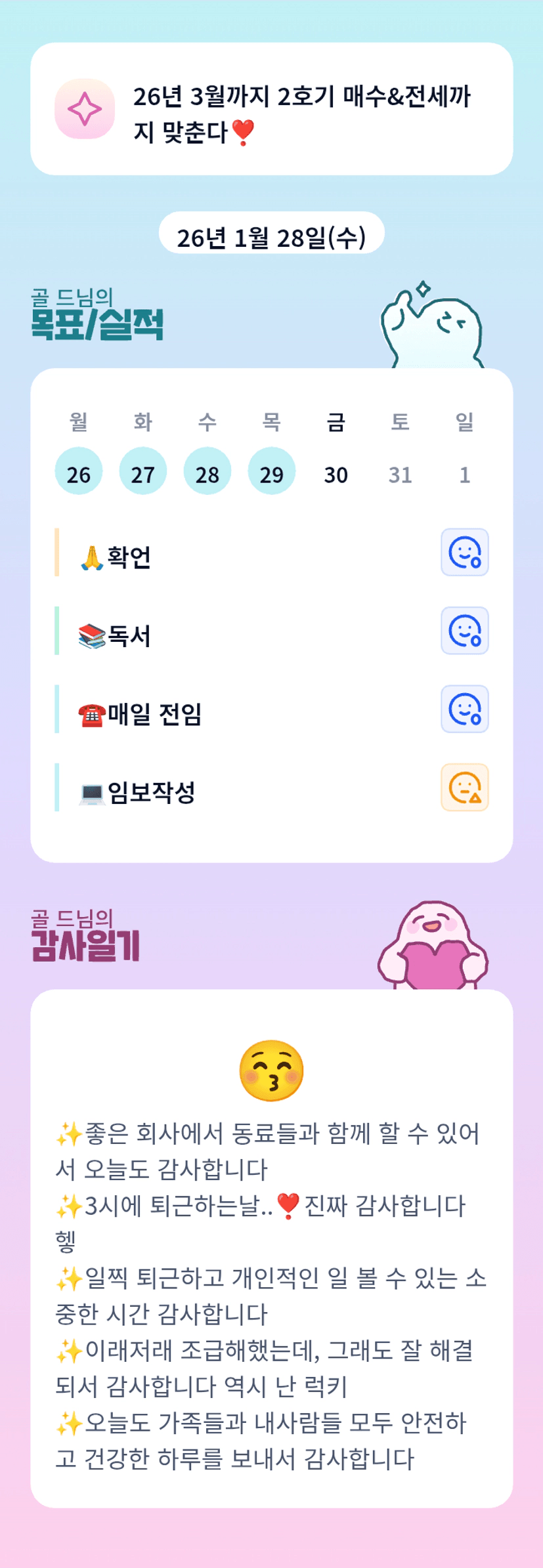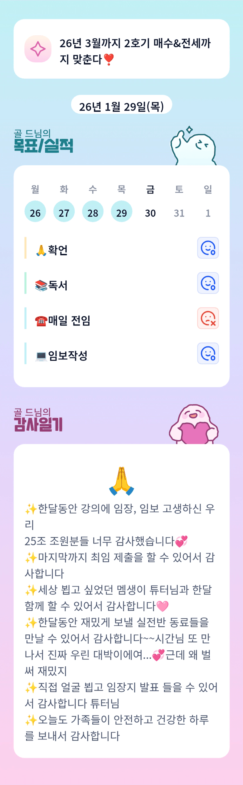 골드님 만나뵈어서 너무 반가워용! 한 달 동안 재밌게해요😊 잘 부탁드리겠습니다❤