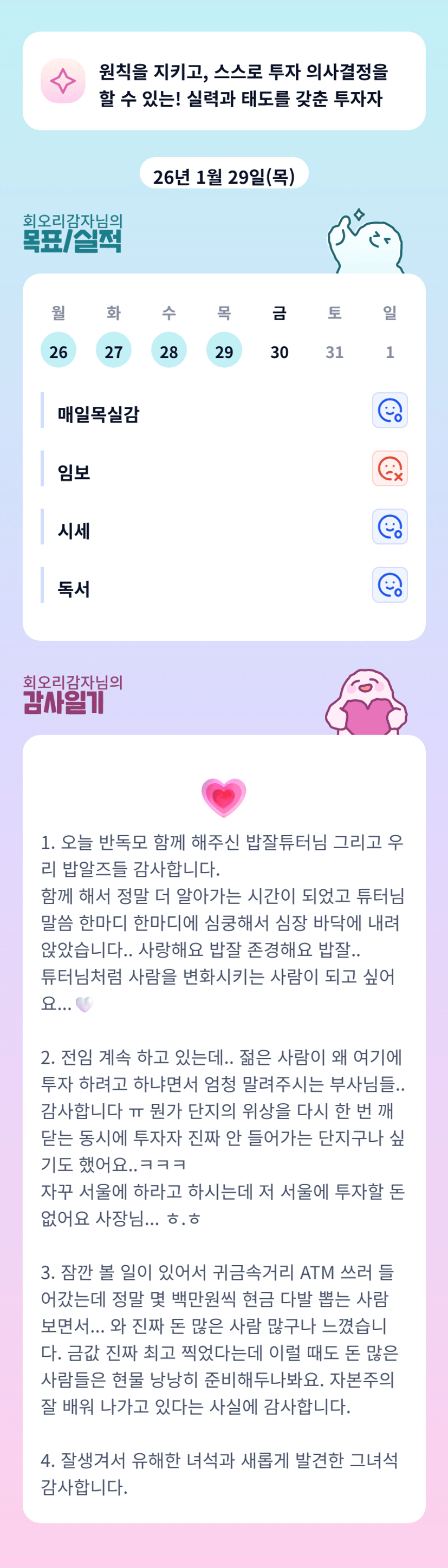 감부님!!! 항상 도움 많이 받는거 알고 있죠?!!!? 항상 신경 써주심에 감사하고 있습니다!!!!😌 몇백만원씩 현금 뽑는 삶? 우리 미래입니다!!!!! ㅡ크크크😆😆🌸