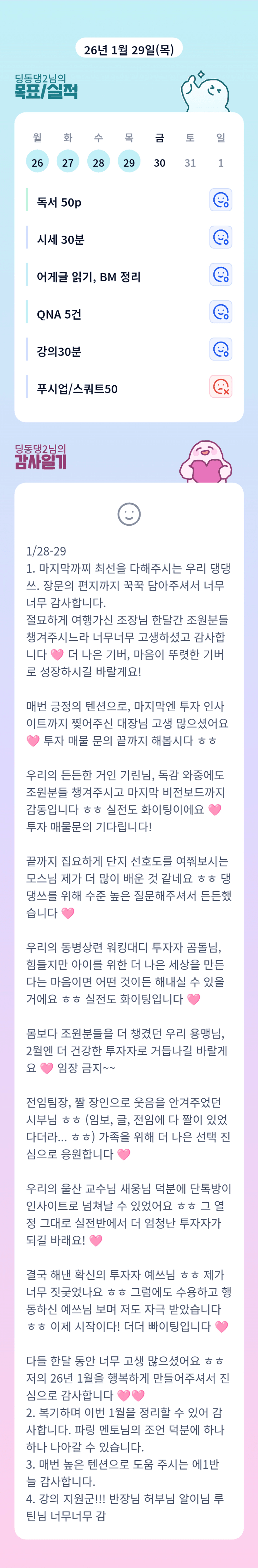 1월 튜터링 행복하셨군여 반장님 고생많으셨습니다💜