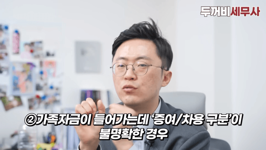 증여랑 차용을 디테일하게 구분하셔야 돼요.