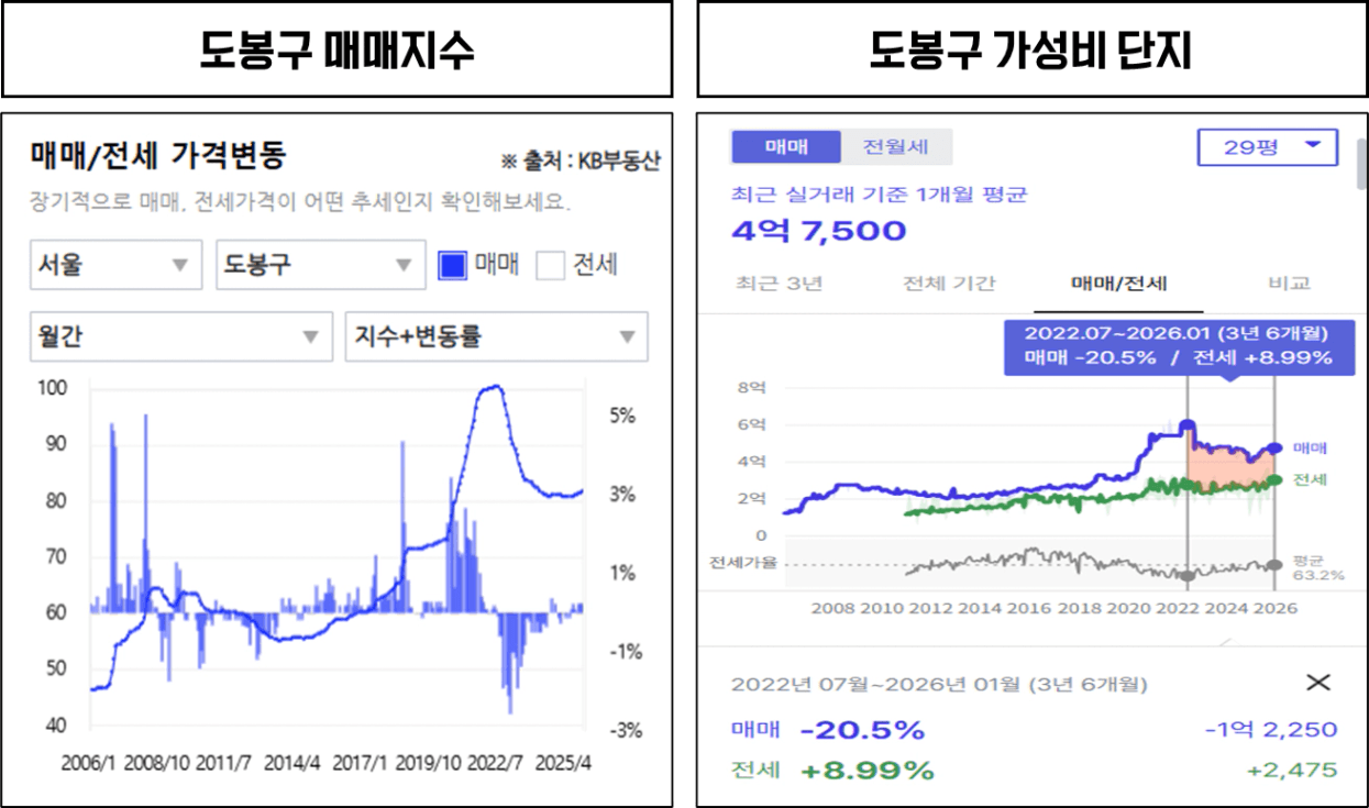 하지만 도봉구로 눈을 돌리면 이야기가 달라집니다.
