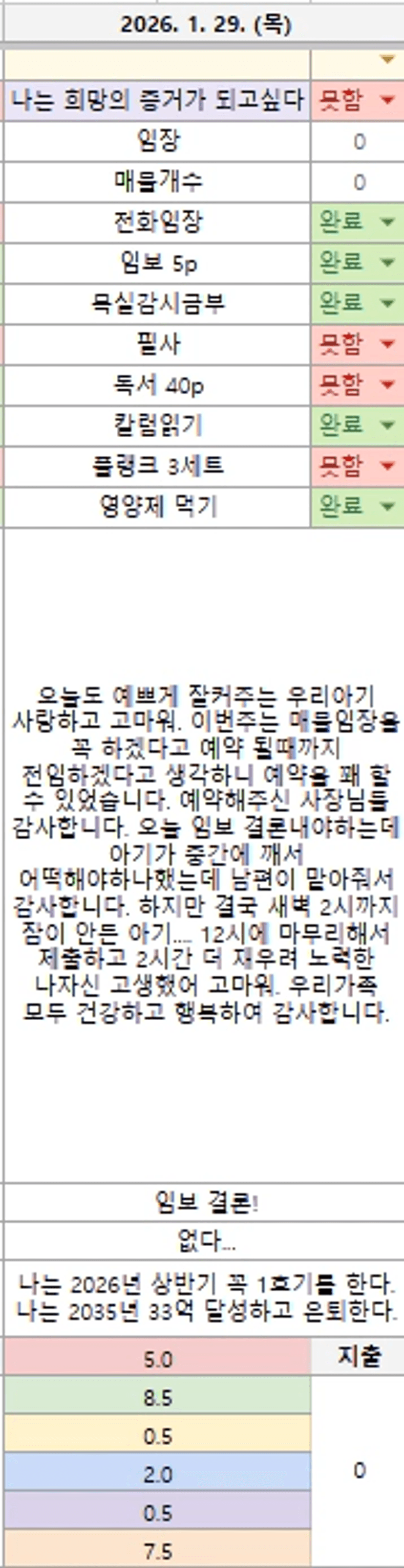 #자기암시나는 항상 투자를 생각하고 실천하는 실전투자자이다나는 시간을 소중히 여기고 과정을 즐기며 목표를 달성한다나는 작은 것에도 감사한다나는 매 순간 실력을 쌓는데 집중하고 성장하여 시장에서 살아남는 투자자가 된다내가 꿈꾸는 삶으로 만들기 위해 오늘도 열심히 노력한다나는 할 수 있다.