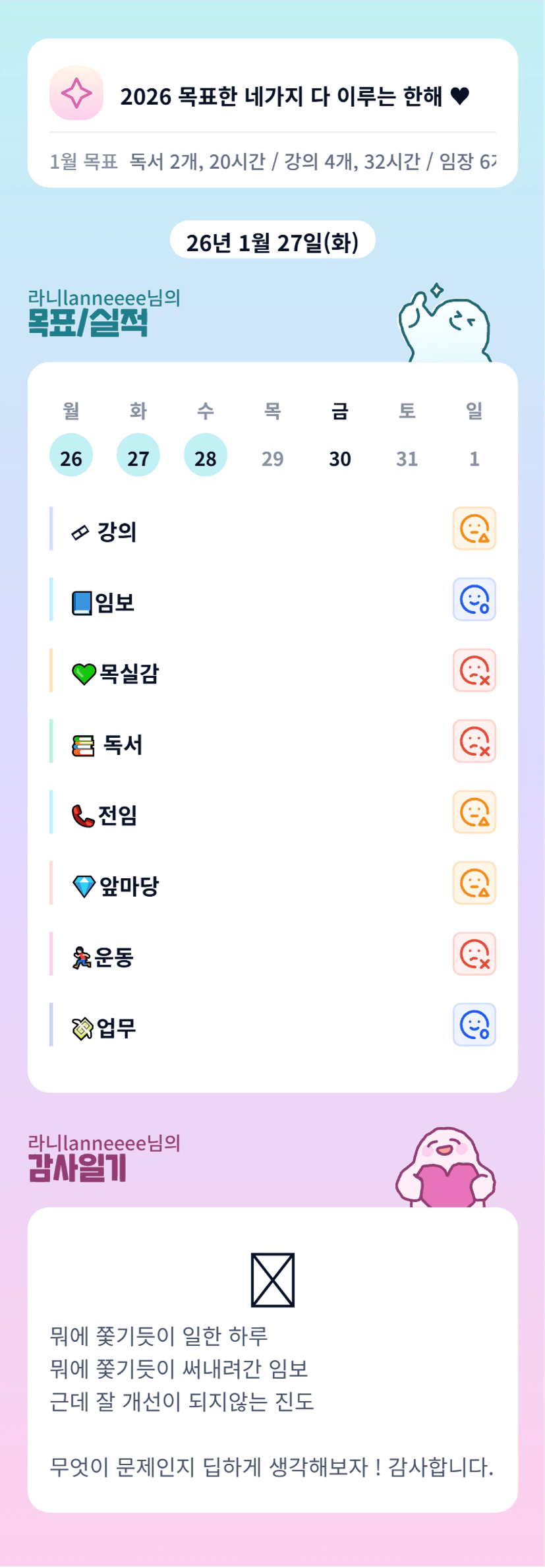 [지투27기 밍튜터님ㅇ1ㄹ6 밍밍할 틈 어썸 라니] 목실감시금부 0127-0129