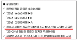물론 당시에 아실 등 공급 캘린더에 잡히는 공급이 실제로 2023년 이후로 줄어들고 있었습니다.