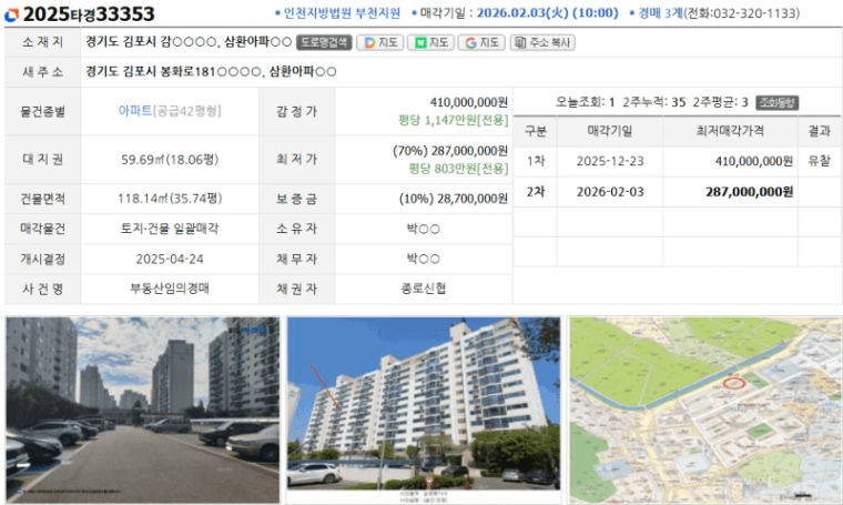✔ 감정가 / 최저가: 410,000,000원 / 287,000,000원 (1회 유찰, 70%)